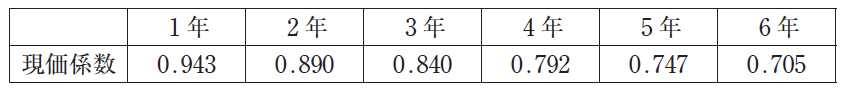 当該取替投資案の採否を現在価値法に従って判定せよ。計算過程も示して、計算結果とともに判定結果を答えよ。なお、割引率は6%であり、以下の現価係数を使用して計算すること。